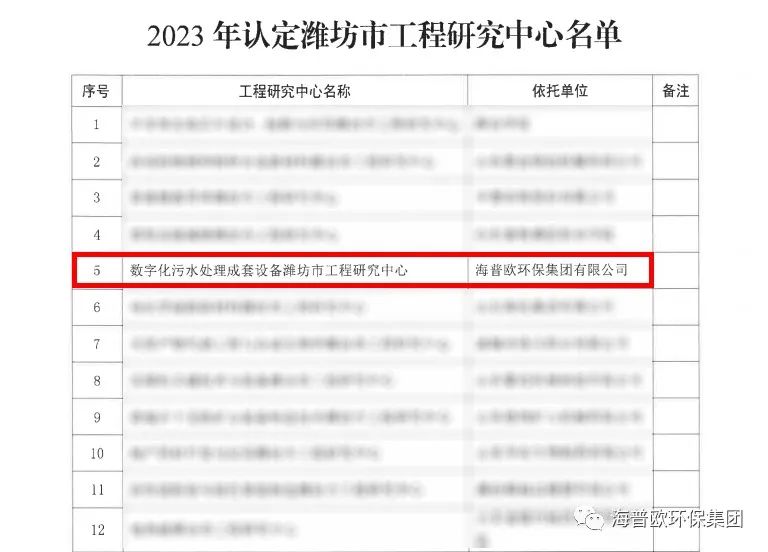 這次認定不僅是對海普歐環(huán)保集團技術實力的肯定,也是濰坊市工程研究中心對數(shù)字化污水處理領域的關注與支持。