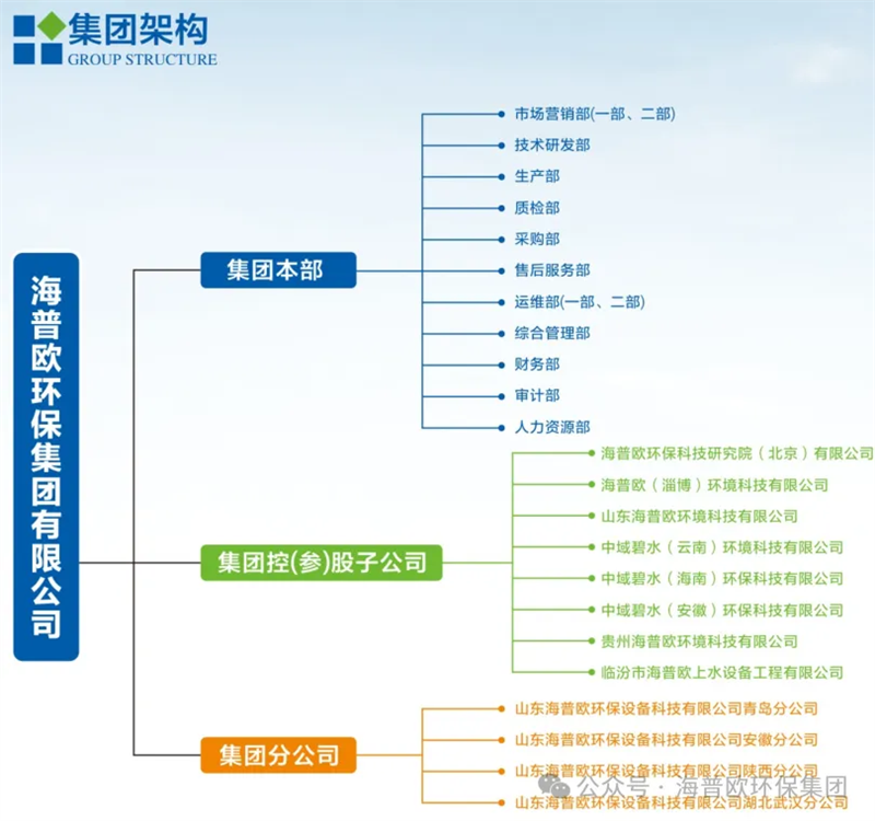 海普歐環(huán)保集團成立于2014年,位于山東省諸城市,是一家集設(shè)計、EPC總承包、裝備制造、安裝調(diào)試、智慧水務(wù)搭建、運維服務(wù)于一體的綜合性國家級高新技術(shù)企業(yè)及省級兩化融合企業(yè)。是中國環(huán)保產(chǎn)業(yè)協(xié)會會員單位、山東省環(huán)保產(chǎn)業(yè)協(xié)會理事單位,2022年被山東省環(huán)保產(chǎn)業(yè)協(xié)會評選為“山東省環(huán)保骨干企業(yè)”。